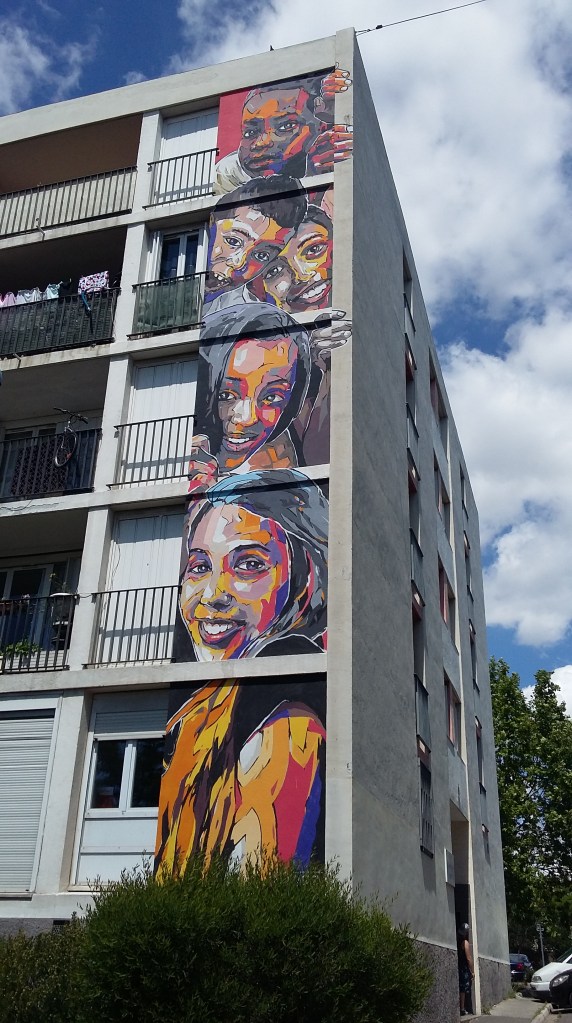 La condition pour que ce dispositif fonctionne est que les gens soient accueillis. Nous avons donc recruté dans le quartier une jeune femme de la communauté comorienne, Roukia. Elle est gaie, c’est elle qui reçoit les gens qui entrent ici. Elle va apporter un verre d’eau ou un petit chocolat quand on en a. Ça rigole dans la grande pièce d’accueil ; on n’y affiche pas les airs renfrognés qu’on voit trop souvent entre les murs des hôpitaux. L’espace est ouvert. Les gens qui entrent sont immédiatement en contact avec une personne communicative, sans guichet, sans liste d’attente. La dame qui vient pour son ulcère, son mari Turc et sa fille peuvent s’installer dans les fauteuils simples autour de petites tables de style « meubles de jardin » plutôt que sur des sièges alignés les uns derrière les autres. Il y a des étagères avec des livres, une télé qui diffuse des clips sur la santé. L’enfant peut s’attarder dans le coin aménagé pour les petits, fouiller dans les jouets collectés autour de nous. Il peut même en emporter à la maison. Dans notre premier local, l’espace épousait la forme du bâtiment en arc de cercle exposé plein sud. Au-delà de l’espace d’accueil, étaient répartis les cinq box de consultation et une grande salle de réunion. C’était très lumineux. Les locaux dans lesquels le centre de soins est maintenant installé sont un peu plus sombres mais il y a toujours au mur, comme une fresque verticale, les photos des peintures urbaines qu’une association de la cité de la Visitation avait réalisées sur les immeubles du quartier.